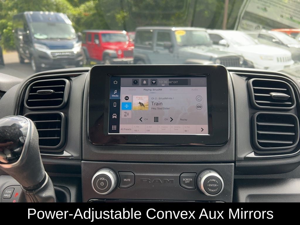 Comfort and convenience are also priorities in this well-appointed commercial vehicle. Enjoy the benefits of air conditioning, power windows, power steering, and remote keyless entry, all while staying connected with the Uconnect 5 infotainment system featuring a 7-inch display, SiriusXM radio, and Apple CarPlay/Android Auto integration.