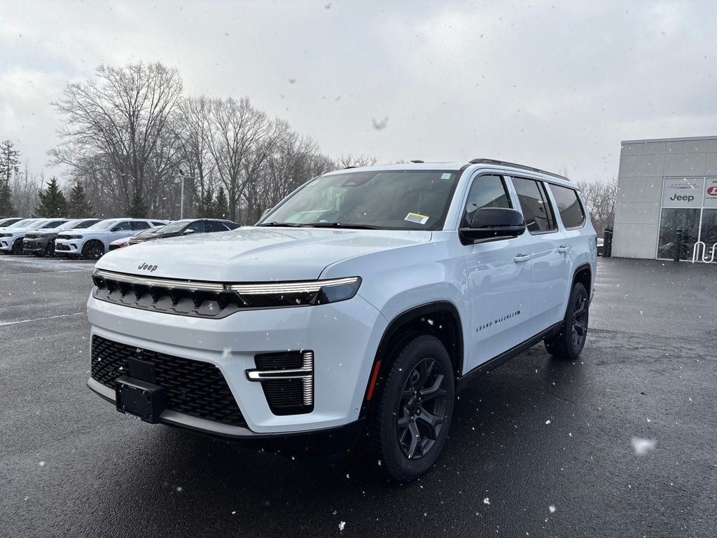 Lia Chrysler Jeep Dodge is delighted to offer this good-looking 2026 Jeep Grand Wagoneer L Limited Altitude in Bright White Clearcoat Beautifully equipped with Altitude Appearance Package, Convenience Group I (2nd Row Manual Window Shades, P and P Park and Unpark Assist with Stop System, Quadra-Lift Air Suspension, Semi Active Damping, Side Distance Warning, Smartphone as a Key Prep, and Surround View Camera System), Premium Group II (19 Speaker McIntosh Audio System, 3 Panel Sunroof, Interior Rear Facing Camera, Luxury Front and Rear Floor Mats, Power Deployable Running Boards, and Reversible Carpet/Vinyl Cargo Mat), Quick Order Package 29X Altitude (Black Exterior Accents, Titanium Daylight Opening Upper, Titanium Upper Grille Applique, and Wheels: 20 x 9.0 Aluminum Painted), Rear Seat Video Group I (Amazon Fire TV Built-in, Seatback Video Screens, and Video USB Port), 118 MPH Maximum Speed Calibration, 3.55 Rear Axle Ratio, 3rd row seats: bench, 4-Wheel Disc Brakes, 9 Speakers, ABS brakes, Air Conditioning, Alloy wheels, AM/FM radio: SiriusXM with 360L, Anti-whiplash front head restraints, Apple CarPlay/Android Auto, Audio memory, Auto Adjust in Reverse Exterior Mirrors, Auto High-beam Headlights, Auto-dimming door mirrors, Auto-Dimming Exterior Driver Mirror, Auto-dimming Rear-View mirror, Auto-leveling suspension, Automatic temperature control, Brake assist, Bumpers: body-color, Compass, Delay-off headlights, Driver door bin, Driver vanity mirror, Driver's Seat Mounted Armrest, Dual front impact airbags, Dual front side impact airbags, Electronic Stability Control, Emergency communication system: Jeep Connect, Exterior Mirrors Approach Lamps, Exterior Mirrors with Memory, Exterior Mirrors with Supplemental Signals, Exterior Parking Camera Rear, Four wheel independent suspension, Front anti-roll bar, Front Bucket Seats, Front Center Armrest w/Storage, Front dual zone A/C, Front fog lights, Front reading lights, Fully automatic headlights, Garage door transmitter, Heated door mirrors, Heated Exterior Mirrors, Heated front seats, Heated rear seats, Heated steering wheel, Illuminated entry, Knee airbag, Leather Trimmed Bucket Seats, Low tire pressure warning, Manufacturer Statement of Origin, Memory seat, Navigation System, Normal Duty Suspension, Occupant sensing airbag, Outside temperature display, Overhead airbag, Overhead console, Panic alarm, Passenger door bin, Passenger seat mounted armrest, Passenger vanity mirror, Power door mirrors, Power driver seat, Power Liftgate, Power passenger seat, Power steering, Power windows, Radio data system, Radio: Uconnect 5 Nav with 12 Display, Rain sensing wipers, Rear air conditioning, Rear anti-roll bar, Rear reading lights, Rear seat center armrest, Rear window defroster, Rear window wiper, Reclining 3rd row seat, Remote Keyless Entry, Security system, Speed control, Speed-sensing steering, Speed-Sensitive Wipers, Split folding rear seat, Steering wheel memory, Steering wheel mounted audio controls, Tachometer, Telescoping steering wheel, Tilt steering wheel, Traction control, Trip computer, Turn signal indicator mirrors, Variably intermittent wipers, Ventilated front seats, Voltmeter, and Wheels: 20 x 9.0 Machine Face Painted Aluminum!