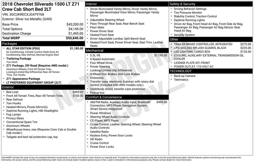 - Vehicle Name: Chevrolet Silverado 1500