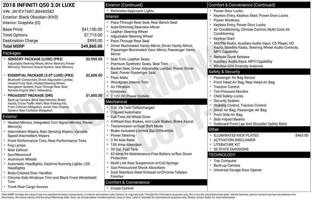 - Vehicle Name: INFINITI Q50