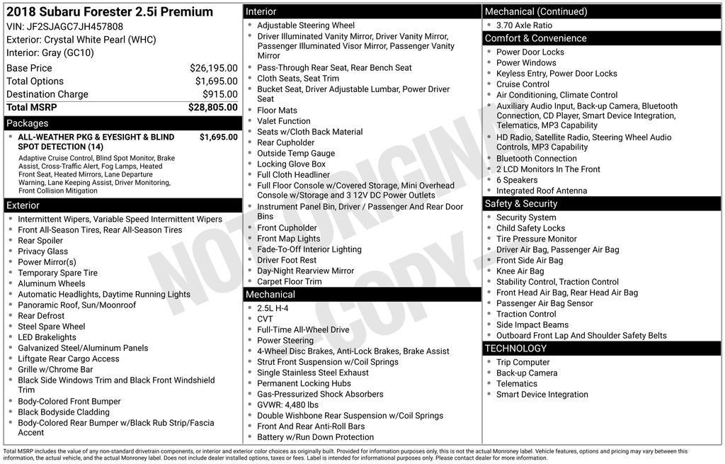 - Vehicle Name: Subaru Forester