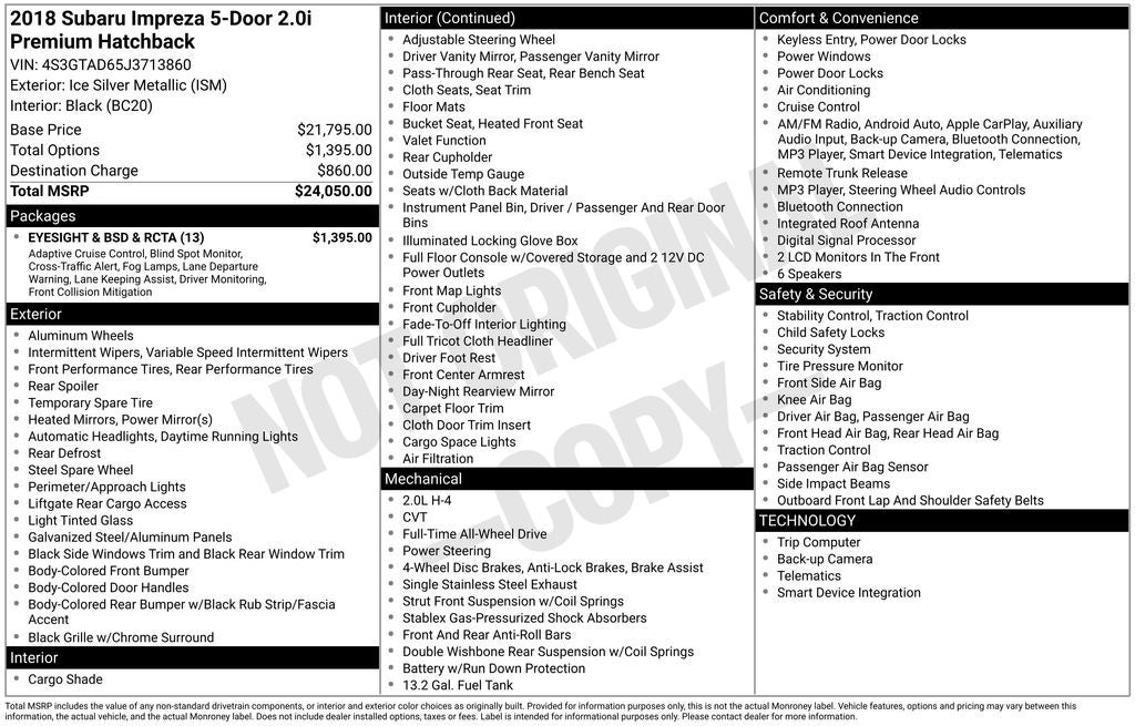 Whether you're commuting, running errands, or embarking on a road trip, the 2018 Subaru Impreza 2.0i Premium is a smart choice that delivers a winning combination of style, performance, and safety. Experience the difference for yourself by scheduling a test drive today.