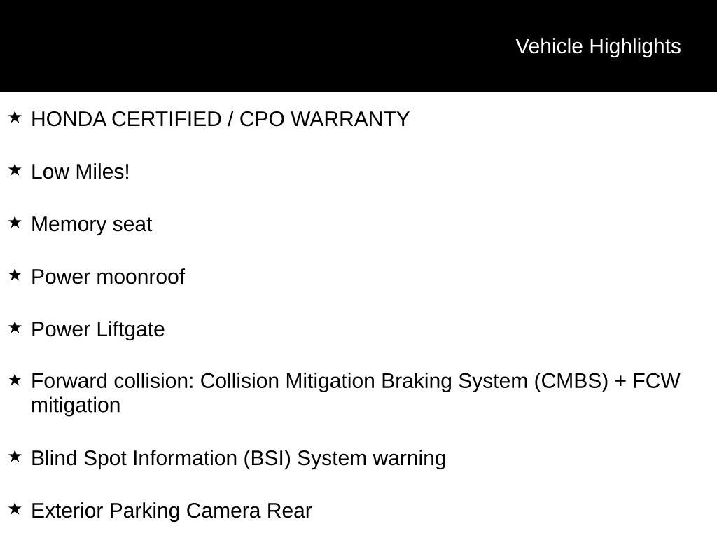 - Honda Certified / CPO Warranty