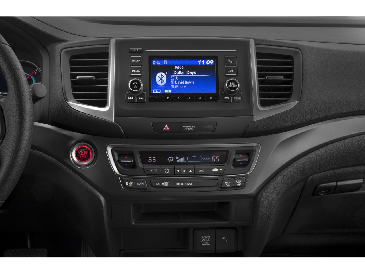 - Radio: 215-Watt Audio System w/7 Speakers -inc: subwoofer, 5" color LCD screen, 1.0-amp USB audio interface in center console, Bluetooth® HandsFreeLink, Bluetooth® streaming audio, MP3/auxiliary input jack in center console, Radio Data System (RDS), Speed-Sensitive Volume Compensation (SVC), 2.5-amp USB charging port in center console and 12-volt power outlets in front and center console