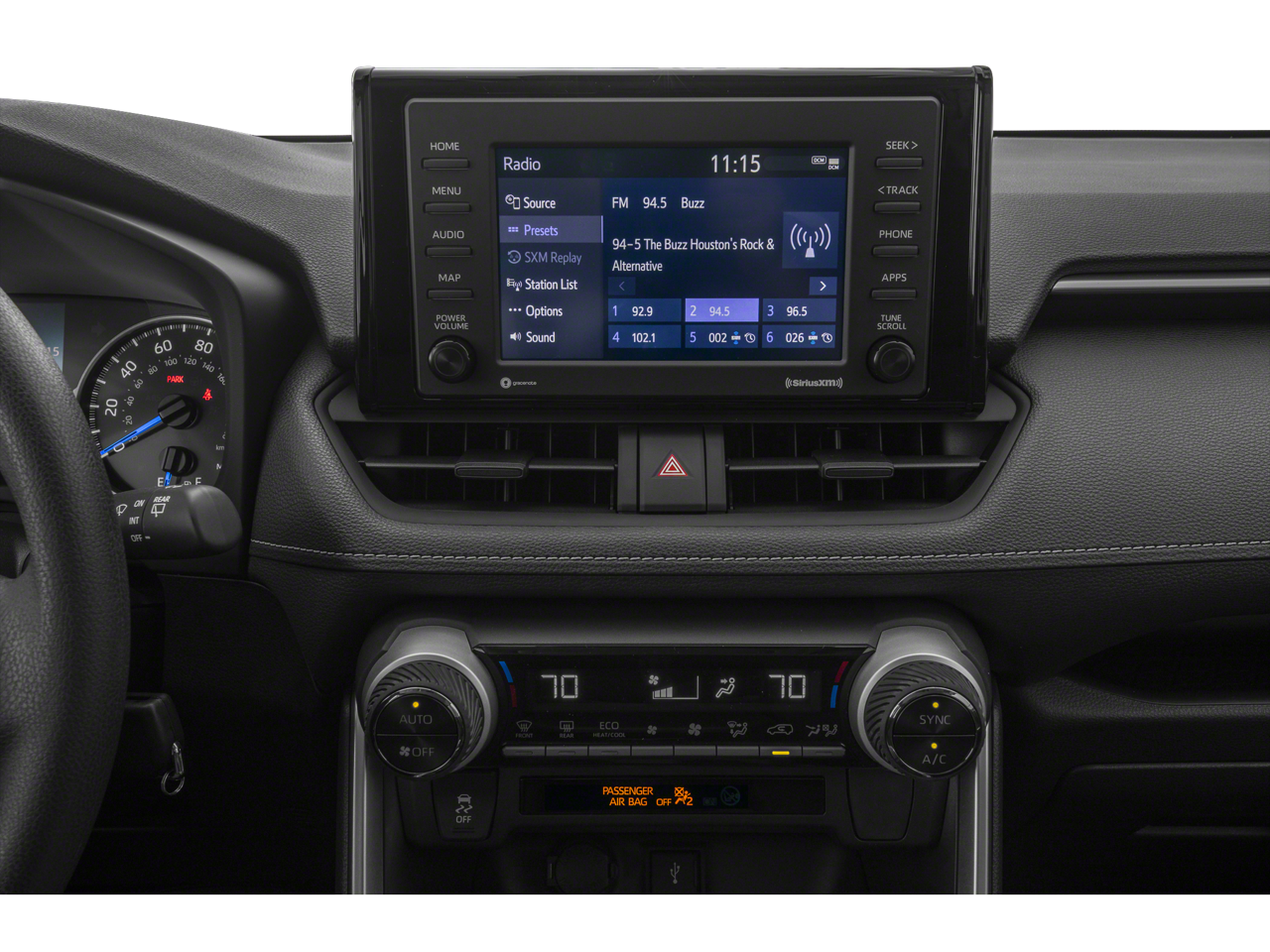 - Radio w/Seek-Scan, Clock, Speed Compensated Volume Control, Steering Wheel Controls, Voice Activation and Radio Data System
