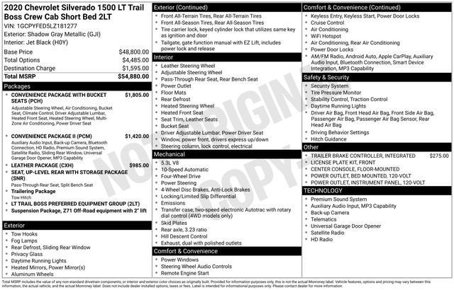 Shadow Gray Metallic 2020 Chevrolet Silverado 1500 LT Trail Boss EcoTec3 5.3L V8 10-Speed Automatic 4WD