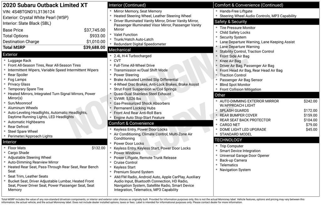 2020 Subaru Outback Limited XT