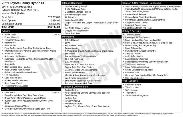 2021 Toyota Camry Hybrid SE