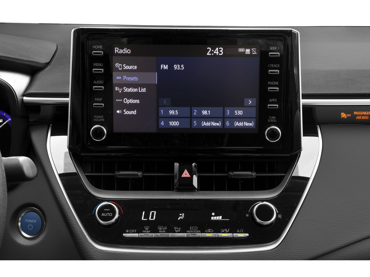 - Radio: Audio AM/FM -inc: 6 speakers, 8" touch-screen, Android Auto, Apple CarPlay and Amazon Alexa compatible, USB media port, 1 USB charge port, hands-free phone capability, music streaming via Bluetooth® wireless technology and SiriusXM w/3-month All Access trial, See toyota.com/audio-multimedia for details, Connected Services - Safety Connect w/1-year trial and Wi-Fi Connect w/up to 2 GB within 3-month trial, See toyota.com/connected-services for details