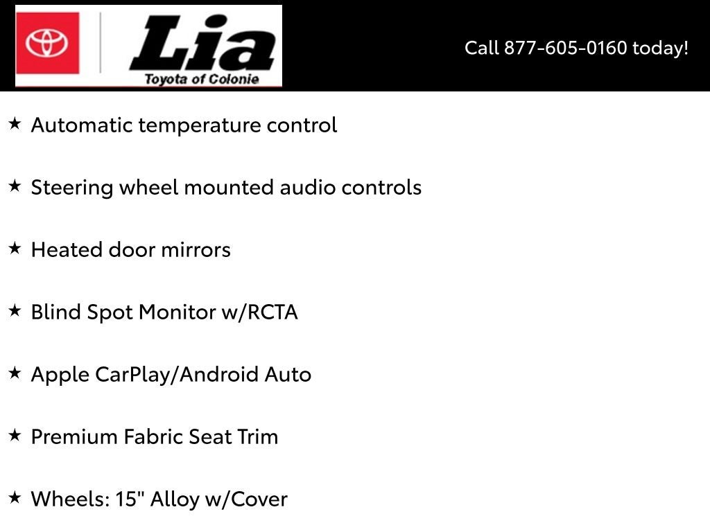 - Radio: Audio AM/FM -inc: 6 speakers, 8" touch-screen, Android Auto, Apple CarPlay and Amazon Alexa compatible, USB media port, 1 USB charge port, hands-free phone capability, music streaming via Bluetooth® wireless technology and SiriusXM w/3-month All Access trial, See toyota.com/audio-multimedia for details, Connected Services - Safety Connect w/1-year trial and Wi-Fi Connect w/up to 2 GB within 3-month trial, See toyota.com/connected-services for details