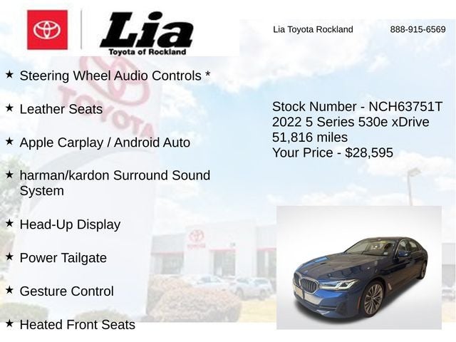 We invite you to visit our showroom and experience the unparalleled craftsmanship and capabilities of this remarkable vehicle. Let us demonstrate how the 2022 BMW 5 Series 530e iPerformance can exceed your expectations and become the perfect addition to your lifestyle. Contact us today to schedule a test drive and discover the joy of driving, redefined.