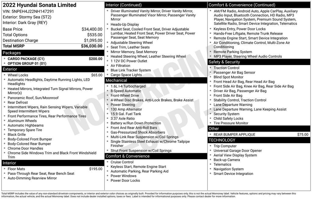 - Vehicle Name: Hyundai Sonata