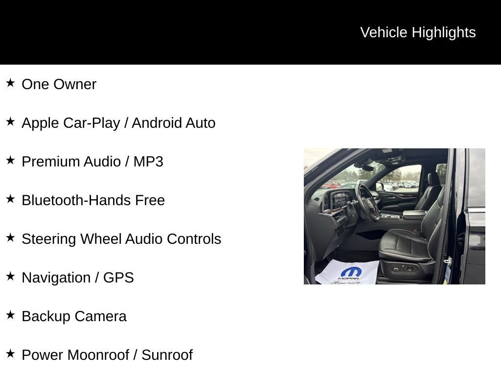 One Owner, Apple Car-Play / Android Auto, Premium Audio / MP3, Bluetooth-Hands Free, Steering Wheel Audio Controls, Navigation / GPS, Backup Camera, Power Moonroof / Sunroof, Heated-Leather Seats, Heated & Cooled Seats, Heated Steering Wheel, Push Button Start, Remote Vehicle Starter, Remote Keyless Entry, Dual Zone Auto-Climate Control, Premium Alloy Wheels, Fog Lights, LED Headlights, Front & Rear Parking Sensors, Adaptive Cruise Control, Lane Departure Warning, Full Power Options: Locks & Windows, Cruise Control, Power Liftgate, Trailering Package, Black Leather.