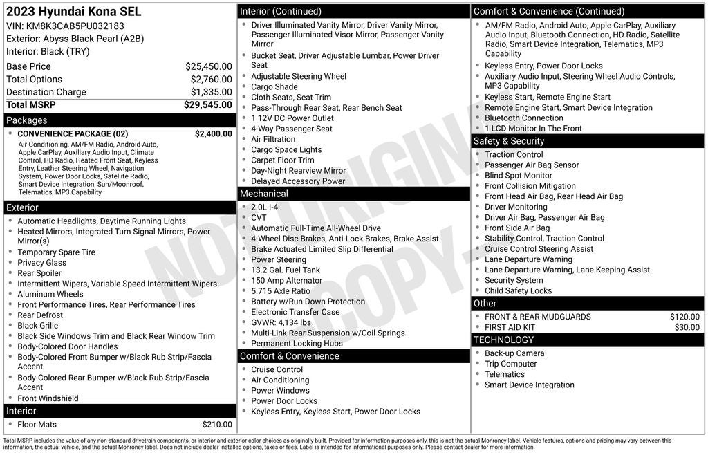 The sales price includes, $5 Title prep fee, and $699 dealer documentation fee.. PRICING AND APR RATES ARE SUBJECT TO CHANGE.**Discount includes all incentives. Plus tax, title, registration, and Certain eligible customers may qualify for additional incentives, see dealer for details. Destination and handling included. Not responsible for typographical errors. Let us bring it to you! Transfers from any Lia dealership is only a fee of $299. Subject to availability. Destination and handling included. MPG based on 2023 EPA mileage ratings. For more information please visit the Fuel Economy Website.