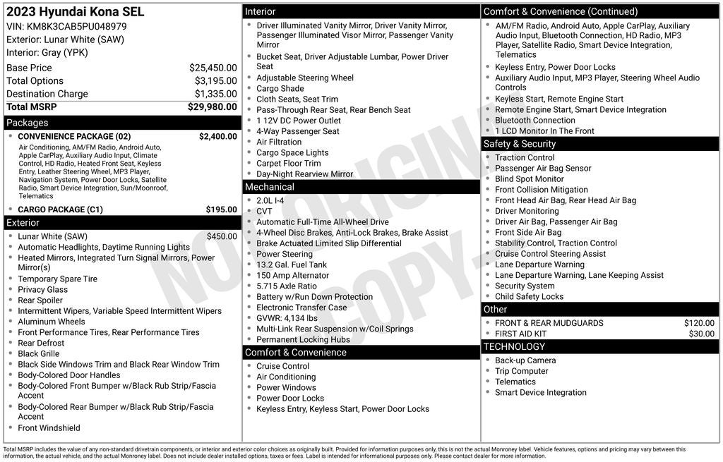 The sales price includes, $5 Title prep fee, and $699 dealer documentation fee.. PRICING AND APR RATES ARE SUBJECT TO CHANGE.**Discount includes all incentives. Plus tax, title, registration, and Certain eligible customers may qualify for additional incentives, see dealer for details. Destination and handling included. Not responsible for typographical errors. Let us bring it to you! Transfers from any Lia dealership is only a fee of $299. Subject to availability. Destination and handling included. MPG based on 2023 EPA mileage ratings. For more information please visit the Fuel Economy Website.