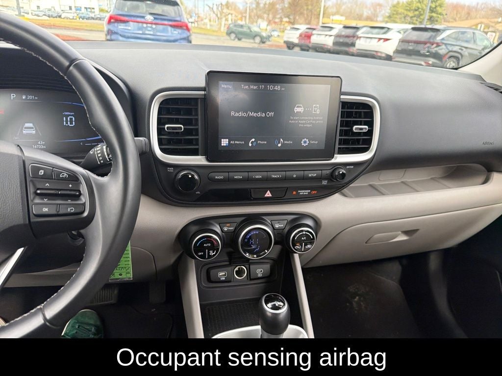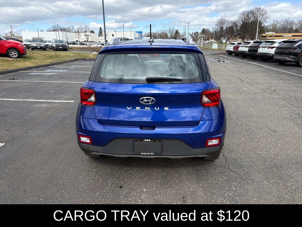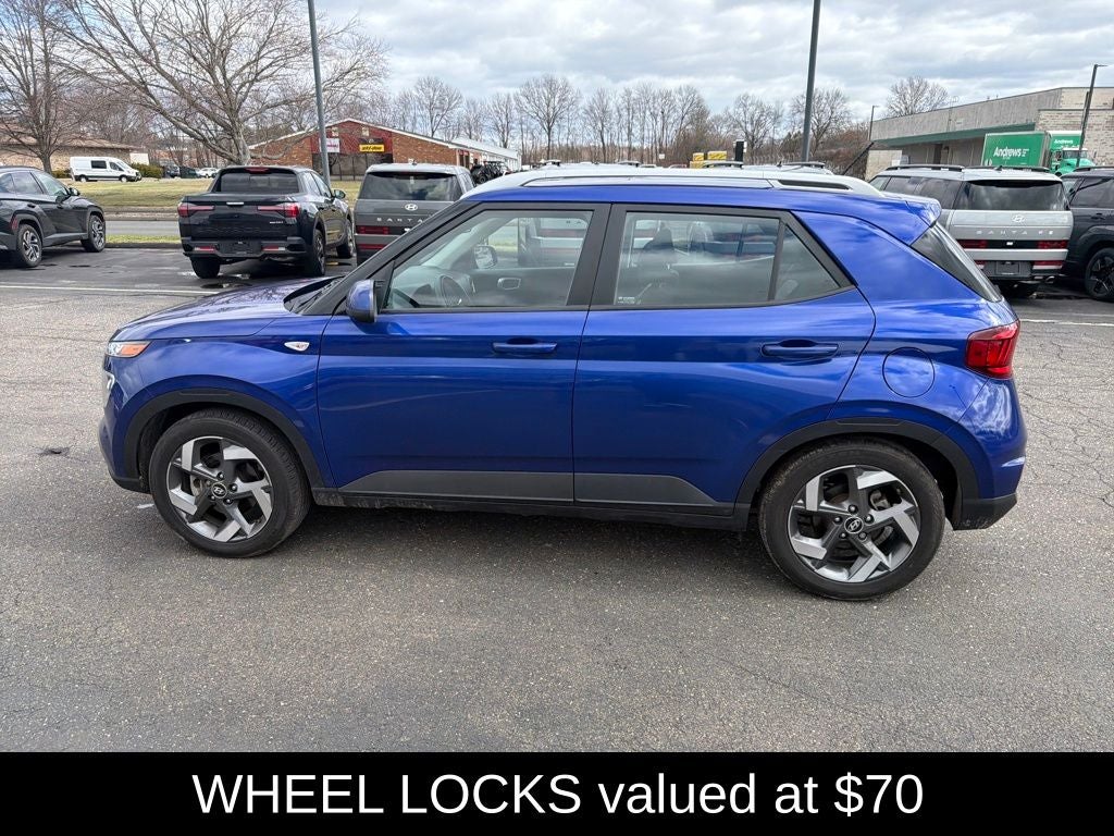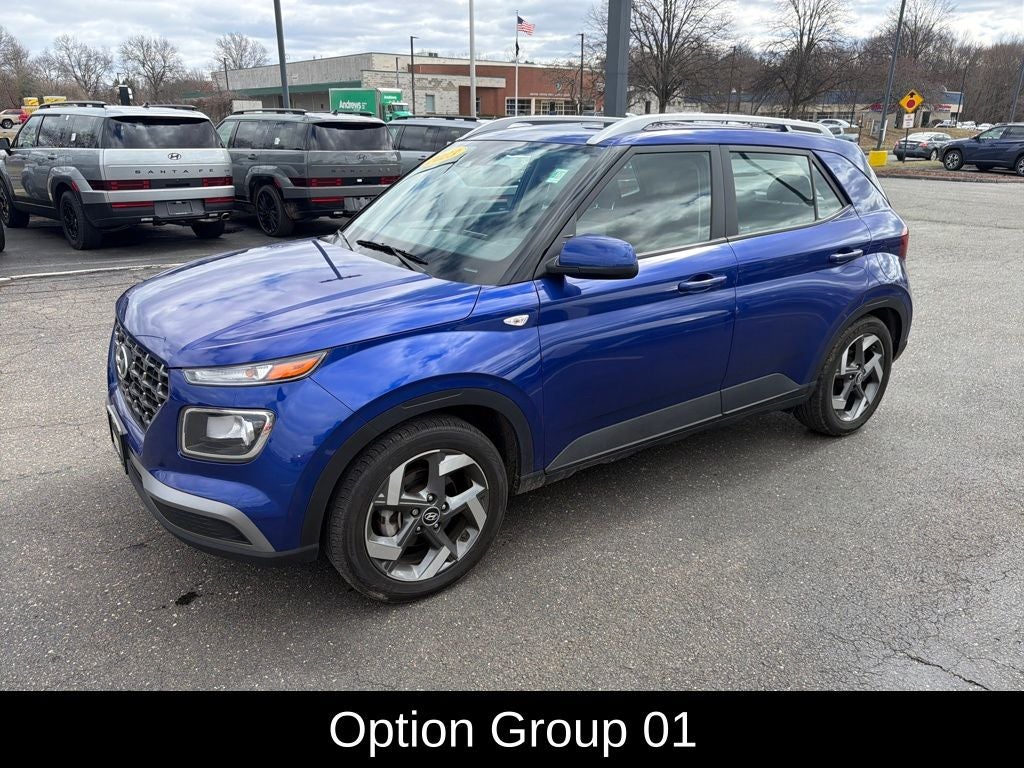 Venue SEL, 4D Sport Utility, CVT, FWD, Intense Blue, Gray Cloth, 4-Wheel Disc Brakes, ABS brakes, Alloy wheels, Apple CarPlay & Android Auto, Brake assist, Carpeted Floor Mats, Cloth Seat Trim, Driver door bin, Driver vanity mirror, Dual front impact airbags, Dual front side impact airbags, Electronic Stability Control, Front anti-roll bar, Front Bucket Seats, Front Center Armrest, Front reading lights, Front wheel independent suspension, Illuminated entry, Leather Shift Knob, Leather steering wheel, Low tire pressure warning, Occupant sensing airbag, Option Group 01, Outside temperature display, Overhead airbag, Overhead console, Passenger vanity mirror, Power moonroof, Power steering, Power windows, Rear Seat Cup Holder, Remote keyless entry, Speed-sensing steering, Split folding rear seat, Steering wheel mounted audio controls, Tachometer.