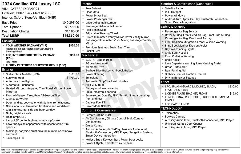 - Vehicle Name: Cadillac XT4