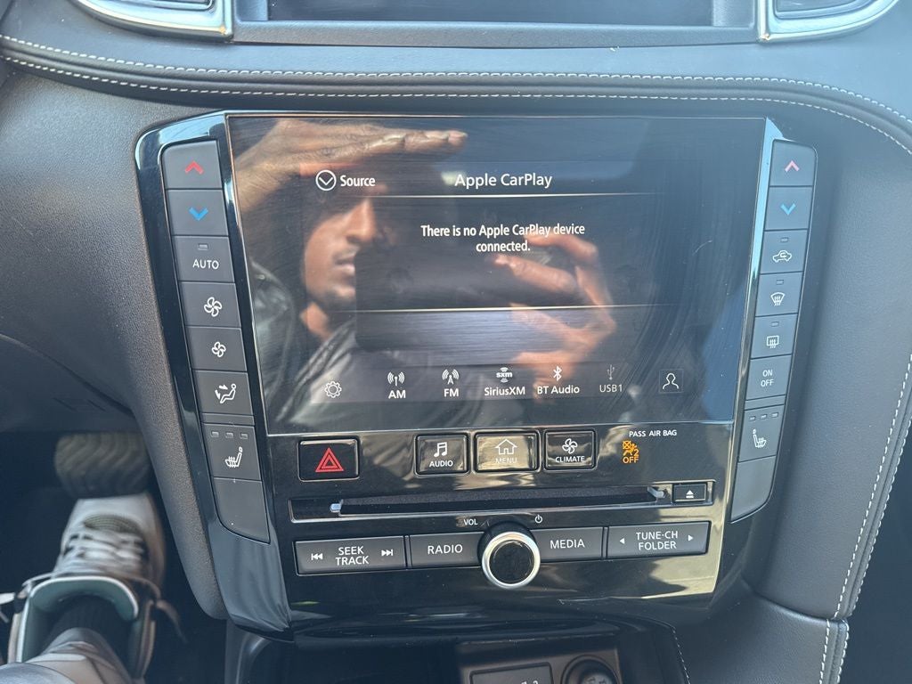 - Radio: AM/FM Audio System -inc: 6 speakers, INFINITI InTouch dual display system w/upper 8" and lower 7" touch screens, wireless Apple CarPlay, Android Auto, HD Radio technology, SiriusXM radio w/advanced audio features and 90-day complimentary trial, INFINITI voice recognition, INFINITI InTouch services, Siri eyes free and Wi-Fi hotspot